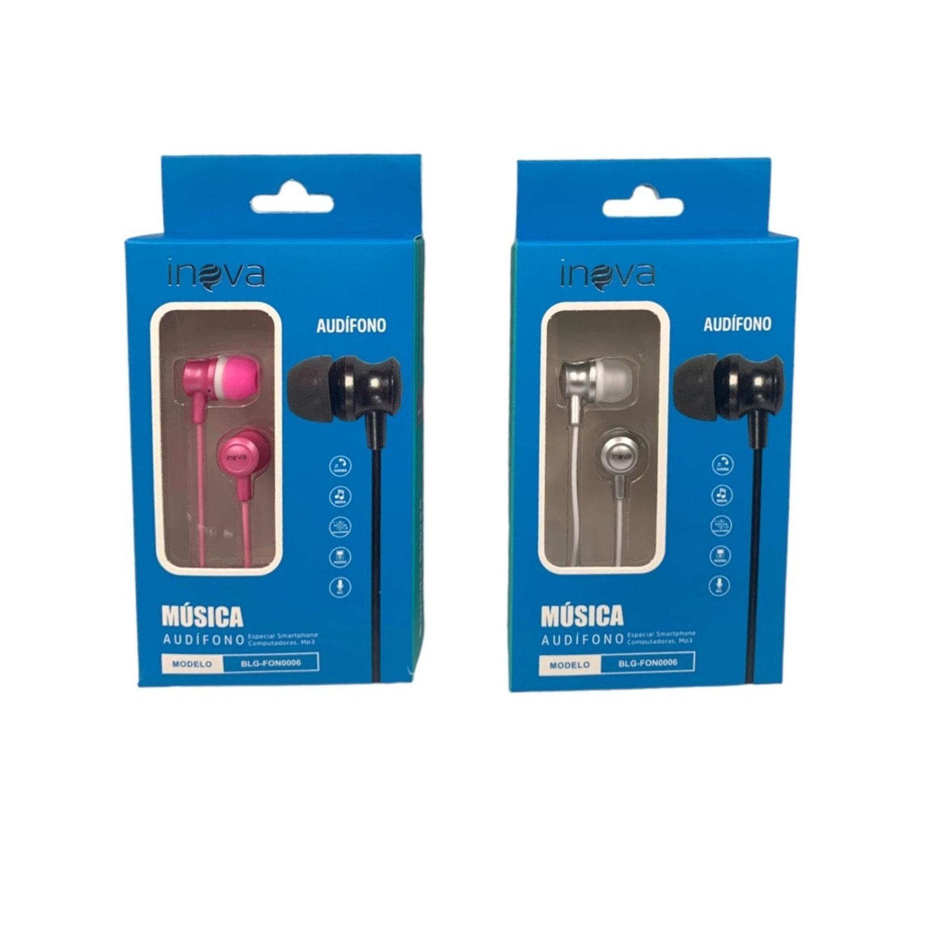 Audifonos con cable Inova disponibles en color blanco y rosa